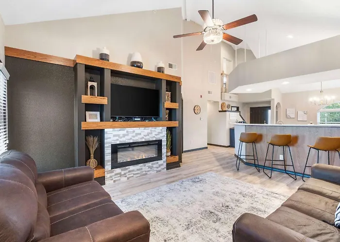 Die Villa Shades Of Branson - Experience All The Best Of Branson Prime Location verfügt über eine komplette Küche, die mit einer Kaffee-/Teemaschine, einem Kühlschrank und einem Herd für die Zubereitung von Mahlzeiten ausgestattet ist. Verbringen Sie einen schönen Abend in den nächstgelegenen Restaurants Sweet Susie's Frozen Treats und CherryBerry, die gleich neben dieser Unterkunft in Branson ist. Die Gäste können diese einladende Villa mit dem Auto vom Flughafen Branson in 27 Minuten erreichen.